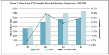 2010年中國有線機(jī)頂盒出貨量將達(dá)到2510萬個,比2009年的2010萬個增長24.8%。由于各省有線電視運(yùn)營商加快發(fā)展用戶,以及小型運(yùn)營商推動客戶從模擬向數(shù)字服務(wù)過渡,預(yù)計(jì)第二季度創(chuàng)下全年的最強(qiáng)勁增長水平。2010年第二季度有線機(jī)頂盒出貨量增長到680萬個,比2009年同期的500萬個增長34%。