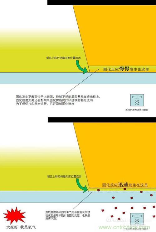 在此前,解決這一問題的方法主要是降低固化速度,在樹脂完全固化之前移動底板,使部分固化的樹脂與透光板脫離接觸,新的低粘度樹脂會補充到原來的位置,然后再開始下一層的固化。但這樣一來,打印速度就無法有效提高了。