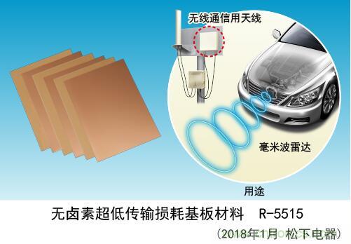 【導(dǎo)讀】 松下電器產(chǎn)業(yè)株式會社汽車電子和機電系統(tǒng)公司開發(fā)出了適用于毫米波段[1] 天線基板的“無鹵素超低傳輸損耗基板材料(型號∶R-5515)”,并計劃于2019年4月開始量產(chǎn)。用熱固性樹脂實現(xiàn)毫米波段中的行業(yè)最高(※1)的低傳輸損耗[2],為天線的高效率化、低損耗化、及降低基板的加工成本做出貢獻。
