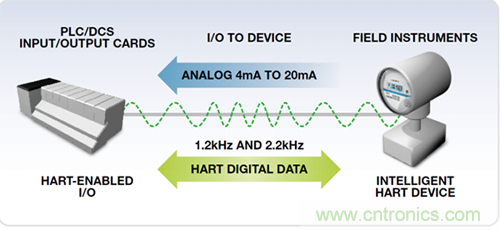 HART 標準的引入提供了一種創建“智能”發射器的方式,方法是添加數字通信功能,共享用于傳統 4 mA 至 20 mA 儀器的同一根雙絞線。4 mA 至 20 mA 模擬電路由 1 mA 峰峰值 FSK 信號進行調制—而不中斷原始主變量傳輸—同時仍然為環路工作留下裕量。HART 協議已經成為在智能設備和控制或監控系統之間通過模擬線路發送和接收數字信號的全球標準。