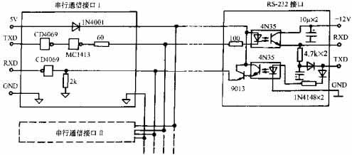 所謂隔離技術(shù),是指將噪聲源與信號線相互隔離開的技術(shù)。在單片機(jī)系列中經(jīng)常采用光耦合器來實現(xiàn)傳感器與輸入通道的隔離、I/O接口的隔離及內(nèi)部電路的隔離。此外,在遠(yuǎn)距離傳輸信號時,也需要采用光電隔離技術(shù)。一種采用光電隔離技術(shù)的網(wǎng)絡(luò)通信接口電路如下圖所示。在對被傳輸?shù)哪M信號進(jìn)行隔離時,宜選用線性光耦合器,其電流傳輸比接近于常數(shù)。