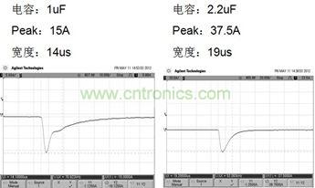 1、電容增大,由于ESR和容量的共同影響,導(dǎo)致開(kāi)機(jī)脈沖Peak增大,脈沖寬度也增加