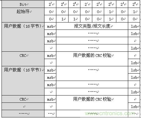 (5) 用戶數(shù)據(jù)之后跟隨一個16位的CRC校驗序列,由下列多項式生成校驗,序列碼為X16+X13+X12+X11+X10+X8+X6+X5+X2+1,生成的16比特校驗序列再取反成為所要求的校驗序列。
