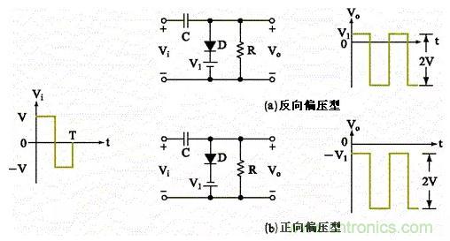【導讀】所謂鉗位,就是把輸入電壓變成峰值鉗制在某一預定的電平上的輸出電壓,而不改變信號。鉗位電路的功能:將輸入訊號的位準予以上移或下移,并不改變輸入訊號的波形。