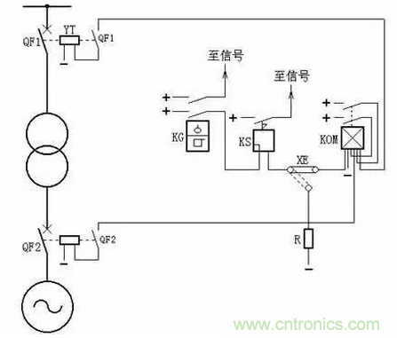 再有,連接片XE也可接至電阻R,使重瓦斯保護不投跳閘而只發信號。