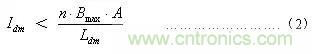 盡管少量的差模電感非常有用,但太大的差模電感可以使扼流圈發(fā)生磁飽和??筛鶕?jù)公式(2)作簡單計算來避免磁飽和現(xiàn)象的發(fā)生。