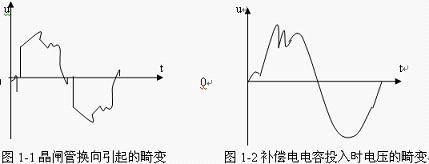1)晶體管換流設(shè)備對變頻器的干擾:當(dāng)供電網(wǎng)絡(luò)內(nèi)有容量較大的晶閘管換流設(shè)備時(shí),由于晶閘管總是在每相半周期內(nèi)的部分時(shí)間導(dǎo)通,容易使網(wǎng)絡(luò)電壓出現(xiàn)凹凸(如圖1-1所示)。它使變頻器輸入側(cè)的整流電路有可能因此出現(xiàn)較大的反向回復(fù)電壓而受到損害。