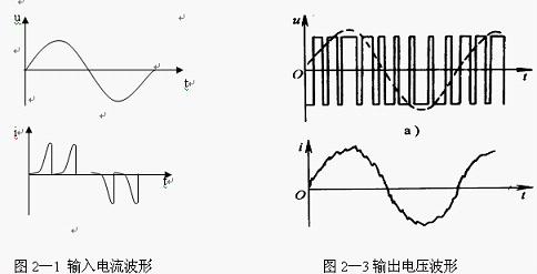輸出電壓與電流的波形:?絕大多數(shù)變頻器的逆變橋都采用PWM調(diào)制方式(如圖2—2),其輸出電壓為占空比按正弦規(guī)律分布的系列矩形波(如圖2-3所示)。