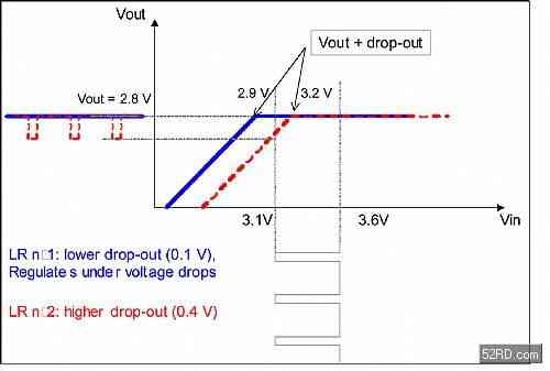 結(jié)論2:對壓降非常小的線性穩(wěn)壓器要求更加嚴(yán)格,因?yàn)殡姵仉妷弘S著時(shí)間的推移會降低,比如降至2.9V。在整個(gè)電池電壓范圍內(nèi)保持穩(wěn)定電壓很重要,由此得到的結(jié)論是壓降越低,電池有效供電時(shí)間就越長。