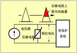 當應用于濾波器時,壓敏電阻提供了額外的瞬態保護功能。它將暫態電壓脈中所載的能量消耗成熱(圖5)。高導電氧化鋅顆粒作為散熱器可確保整個器件中迅速和均勻地散熱,并盡量減少溫度上升(但是壓敏電阻只可以消耗少量的平均功率,不適合應用在連續功率消耗上)。