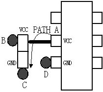 如圖8(b)所示,將過孔B放在電容電源管腳和芯片電源管腳之間,這樣將增加通路A的環(huán)路電感,當電容和芯片不是位于同一層時,一般采用這種方式。