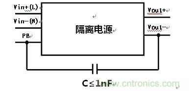 那么,如果隔離電源在應(yīng)用過程中一定要進行輸出Vout-連接到PE端,可以按照上圖的連接思路,通過電容將這兩個端子進行連接,這樣設(shè)計保證了客戶特殊使用要求的同事,對于上述問題也能夠有效的規(guī)避。