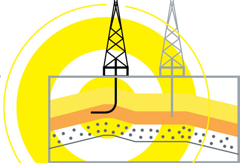 在深達(dá)大約3000多米的巖層之下,蘊(yùn)藏著數(shù)萬億立方英尺的天然氣,但普通的鉆井根本無法鉆取。解決辦法是沿著巖層進(jìn)行水平鉆探,即首先鉆出垂直鉆井,到 達(dá)天然氣層后再90度大轉(zhuǎn)彎實(shí)施水平鉆探。目前這只是個(gè)技術(shù)的概念。但美國第三大天然氣生產(chǎn)商切薩皮克能源公司計(jì)劃到2010年底將水平鉆井?dāng)?shù)量提高到 40個(gè)。