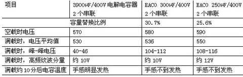 表3 EACO薄膜電容器替代鋁電解電容器測試結果