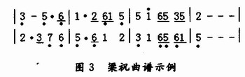 因此,可以所選曲譜的最短音符作為時(shí)值的度量單位。比如,圖3所示的《梁祝》曲譜中最短的音符為8分音,若其編碼存放1個(gè)存儲(chǔ)單元,則時(shí)值計(jì)數(shù)脈沖周期為一個(gè)8分音長(zhǎng)時(shí)間,可選O.5s。曲譜中的四分音符碼需要存放2個(gè)單元,一拍延長(zhǎng)音也需要2個(gè)單元。該段曲譜有8個(gè)音節(jié),每個(gè)音節(jié)是一個(gè)全音(8個(gè)8分音),演奏總時(shí)值為8×8個(gè)8分音。所以,存儲(chǔ)曲譜編碼的存儲(chǔ)器需要64個(gè)存儲(chǔ)單元。