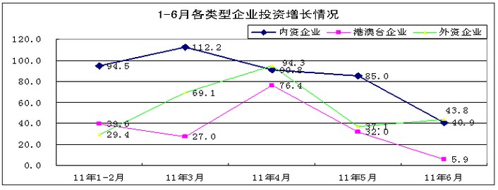 港澳臺企業(yè)完成投資401億元,同比增長32.6%,低于全行業(yè)35個百分點,其中6月份增長5.9%,比5月回落26.1個百分點。外商投資企業(yè)完成投資613億元,同比增長50.1%,6月份增長43.8%,高于5月份增速6.7個百分點。