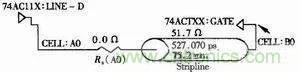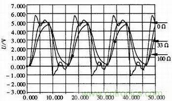 從圖中看出,信號(hào)線加長(zhǎng)后,由于傳輸線的等效電阻、電感和電容增大,傳輸線效應(yīng)明顯加強(qiáng),波形出現(xiàn)振蕩現(xiàn)象。因此在高頻PCB布線時(shí)除了要接匹配電阻外,還應(yīng)盡量縮短傳輸線的長(zhǎng)度,保持信號(hào)完整性。