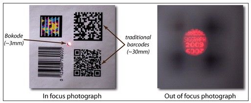 Bokode設計從角度來形成及解讀信息,這使得標準相機看世界的方法和人眼迥異,并可以從遠距偵識出物體的身份及和光學標簽的相對角度。因為Bokode它讓使用者可以從很遠的地方利用現(xiàn)有設備讀取信息,因此較傳統(tǒng)條形碼更有用,彈性更大。