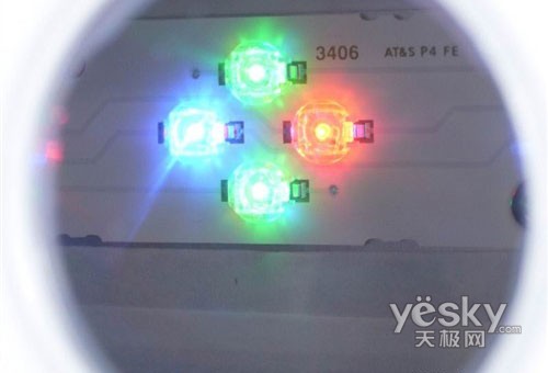 采用了RGB-LED背光源的液晶電視,可以通過采用合理的場序(FieldSequential)技術,利用人類的視覺暫停效應,直接利用RGB三色光源實現最終混色,達到全彩顯示的效果。而通過對一副完整彩色畫面中紅綠、紅藍色彩的交替顯示技術,能避免藍綠像素干擾的問題,進一步提高電視的色域范圍,達到接近122%等比NTSC色域的標準。