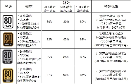 表1:80 PLUS等能效標(biāo)準(zhǔn)對多路輸出ATX電源的能效要求