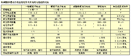 磷酸鐵鋰動(dòng)力電池主要性能列于表1。為了與其他可充電電池的相比較,也在表中列出其他種類可充電電池性能。這里要說明的是,不同工廠生產(chǎn)的磷酸鐵鋰動(dòng)力電池在各項(xiàng)性能參數(shù)上會(huì)有一些差別;另外,有一些電池性能未列入,如電池內(nèi)阻、自放電率、充放電溫度等。