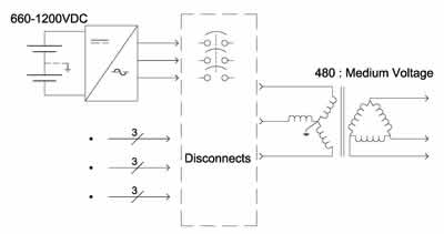 過(guò)采用可分離的兩極+600和-600VDC電池組數(shù)組實(shí)現(xiàn)直接轉(zhuǎn)換這項(xiàng)新技術(shù),無(wú)需在低壓三相電網(wǎng)上配備變壓器。這種配置不僅提高了發(fā)電效率,而且不需要傳統(tǒng)上所要求使用的逆變器變壓器,降低了相關(guān)的系統(tǒng)平衡(BoS)成本,還避免了與單極配置有關(guān)的不必要的線路衰減。這項(xiàng)技術(shù)還為電力集成商和公用電力事業(yè)機(jī)構(gòu)的大型商業(yè)或公用安裝項(xiàng)目帶來(lái)了更多好處。例如,通常規(guī)模在1到2兆瓦的商業(yè)項(xiàng)目,在連接點(diǎn)位于大樓入口變壓器低壓側(cè)要求配有一至八個(gè)逆變器,并且每個(gè)逆變器都要配有單獨(dú)的、定制的隔離變壓器——即使變壓器已與逆變器集成。而真正的無(wú)變壓器設(shè)計(jì)的逆變器才能支持直接的連接,不需要任何其它的變壓器設(shè)備和定制修改,而且也不會(huì)產(chǎn)生系統(tǒng)平衡成本。對(duì)于那些中壓變壓器連接點(diǎn)在5到12.7千伏之間的公用安裝項(xiàng)目,可將多個(gè)無(wú)變壓器逆變器整合成一個(gè)大小適當(dāng)?shù)臉?biāo)準(zhǔn)中壓變壓器。變壓器可以放在電場(chǎng)的任何位置,以靠近逆變器是最合適的。