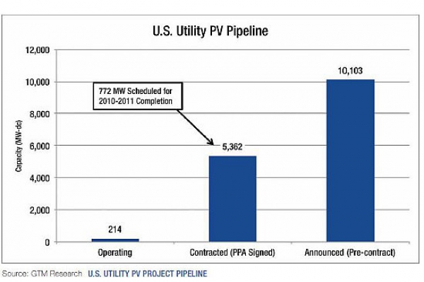 盡管GTM Research公司所公布的一份最新詳細報告中并不認為在未來的幾年內美國在其光伏項目領域內所公布的20GW具有很大的可信度,但是該報告的作者Shayle Kann明確指出該領域確實將會迎來大幅發展。據這份名為《美國光伏電力市場——2015年市場需求、業內從業者、策略及項目經濟分析》的報告稱,光伏電力市場在2010年就已取得10億美元的業績,并將于2015年將這一數字提至80億美元。