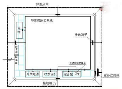根據(jù)‘郵標’規(guī)定“采用環(huán)形等電位連接時,應(yīng)在機房內(nèi)沿走線架和墻壁設(shè)置環(huán)形接地匯集線,環(huán)形接地匯集線應(yīng)多點就近與地網(wǎng)連通,站內(nèi)設(shè)備由環(huán)形匯集線就近接地。”