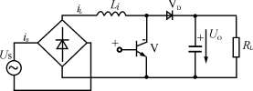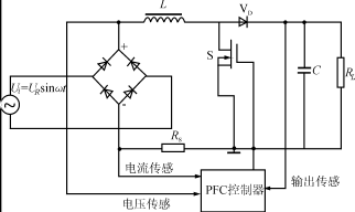 開(kāi)關(guān)電源的功率因數(shù)校正器(PFC)可分為兩類,一類為有源PFC,由電感電容及電子元器件組成;另一類為無(wú)源PFC,一般采用電感補(bǔ)償方法使交流輸入的基波電流與電壓之間相位差減小來(lái)提高功率因數(shù)。在校正電路中有源PFC較多采用高頻升壓電路功率因數(shù)開(kāi)關(guān)調(diào)節(jié)器,通常采用Boost電路,基本電路拓樸見(jiàn)圖1。