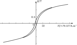 圖4是有效磁導(dǎo)率為75的鐵粉心的靜態(tài)磁滯回線,和鐵氧體材料相比,有高的Bs值,不易飽和,因此體積至少可減小一半,采用廉價(jià)的鐵粉作原料,并且不需要開(kāi)口,沒(méi)有噪聲,成本可大大降低,價(jià)格可以和鐵氧體比擬,以27×14×11的規(guī)格為例,它可以承受400安匝而不飽和,優(yōu)點(diǎn)突出。
