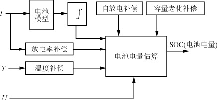 電量估算采用實時電流積分的安時法進行基本估算,然后通過對影響電池電量的溫度、自放電及老化等各種參數進行修正,并考慮單塊電池間的不一致性,從而得到精確的電池組電量。