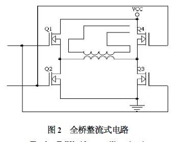(2) 全橋整流式電路。圖2 所示為全橋整流式電路。該方案采用了4 個MOS 管,工作時對管同時導通,半周期內Q1、Q3 導通,Q2、Q4 截止,然后Q2、Q4 導通,Q1、Q3 截止。這樣的工作方式使每半周期都有2 個MOS 管來分壓,對MOS管的耐壓要求就降低了,適用于高壓場合,但由于使用了4個MOS 管,使得損耗功率增加,開關損耗同時增加。考慮到農業機械一般功率較大,采用該方案必然降低電能利用率,導致大量的能耗損失。