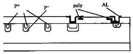 這種結構在版圖設計上通過增加鋁場板的長度來實現,比較容易控制,使得金屬覆蓋過離主結最近的場限環,它不僅起到了場板和場限環的效果,又避免了傳統結構在場板的邊緣產生新的電場峰值,避免了電壓在場板邊緣和場限環之間的提前擊穿。