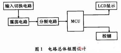 如圖1所示。框圖包括輸入切換部分、振蕩部分、分頻部分、單片機部分、顯示部分和鍵盤部分。此系統由STC89C51單片機作為控制核心,輸入切換部分采用雙刀雙擲繼電器完成待測電容或電感的線路切換,振蕩電路工作在放大諧振狀態,頻率有高頻管9018的集電極輸出,由于頻率較高,所以需經過信號分頻,再者由于輸出的電壓幅度大,此處無需再加一級驅動,以74LS393數字分頻芯片,把分頻端級聯實現100分頻,最終信號進入單片機,由單片機計算出頻率,經過算法設計,實現未知電容或電感參數的測定。圖1給出了系統的總體框架圖。
