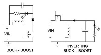 圖1 供應(yīng)LED電力的簡易降壓及升壓拓?fù)鋄page]