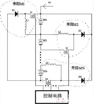 4.運(yùn)用分時(shí)原理,通過開關(guān)組件的控制和切換,使額外的電流流入電壓相對(duì)較低的電池中以達(dá)到均衡充電的目的。該方法效率比較高,但控制比較復(fù)雜。