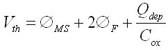 可見閾值電壓主要與基區摻雜濃度(p-)、柵氧化層厚度(Toxg)、耗盡層電荷(Qdep)相關。式中前兩項因子對Trench MOSFET和Plannar MOSFET而言相同,而第三項則不同,因為耗盡層電荷與溝道長度有關,兩者的溝道長度表達式為