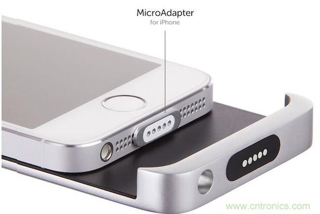 使用像MagSafe 一樣的連接線時,事先將被稱為MicroAdapter的小型配適器插入iPhone的Lightning端口。為了使充電用的Lightning連接線可以實現正常充電,通過使用配有MagAdapter的磁石連接口來連接實現充電。這是原創(chuàng)設計所以不能說該產品使用了便攜式MacBook的充電連接線。