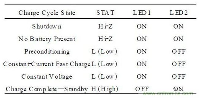 表1:MCP73831 電路設計中指示燈的邏輯關系