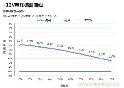 這是一款入門級電源的整體表現,效能就是通牌水準,而電源電壓偏離也是處于一個比較好的水平,下面我們接上延長線去測試。