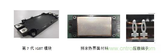 第7代IGBT模塊,可以應用在通用變頻器、伺服驅動器及不間斷電源。它采用了第7代IGBT硅片和二極管硅片,降低損耗;具有650V、1200V和1700V三種電壓等級;涵蓋模塊電流75A至2500A;兼容現有市場主流產品封裝;提高產品熱循環壽命和功率循環壽命;采用預涂熱界面材料(PC-TIM),與傳統硅脂相比,模塊與散熱器的接觸熱阻降低70%;NX封裝具有焊接方式和壓接方式兩種控制端子可供選擇。