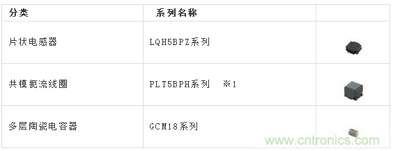 ※1:需要比1更有效果的靜噪對策時可考慮使用PLT10HH系列等其他共模扼流線圈。關于汽車的電源用共模扼流線圈,請參照以下選擇表。