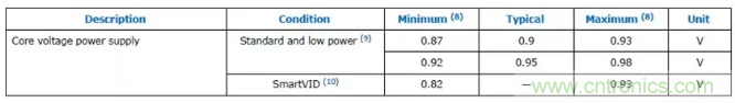 圖1:Arria 10 FPGA內(nèi)核電壓要求 (來源: Intel®Arria® 10 器件數(shù)據(jù)表)