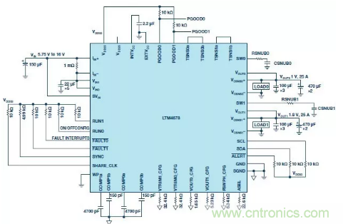 圖3:ADI的LTM4678應(yīng)用線路圖