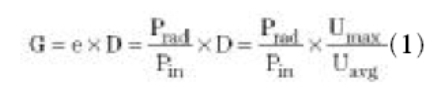 如式1所示,天線增益G被定義為最大輻射強度同平均輻射強度乘以天線效率的比。
