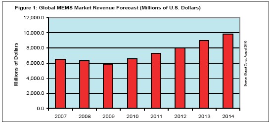 - 今年MEMS市場將增長11 .1%達65.54億美元