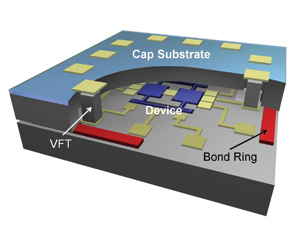 MEMS器件有時(shí)也采用晶圓級(jí)封裝,并用保護(hù)帽把MEMS密封起來(lái),實(shí)現(xiàn)與外部環(huán)境的隔離或在下次封裝前對(duì)MEMS器件提供移動(dòng)保護(hù)。這項(xiàng)技術(shù)常常用于慣性芯片的封裝,如陀螺儀和加速度計(jì)。