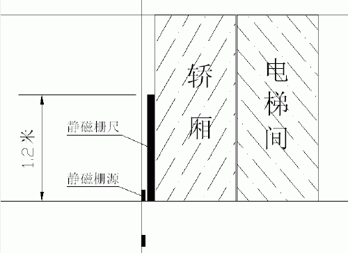 要使電梯到達平層區域后能自動平層,必須有一套自動控制系統,即電梯的自動控制裝置。該裝置的控制部分是靜磁柵位移傳感器,以30層電梯為例,安裝圖如下圖所示。