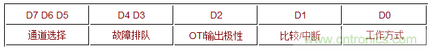 D1 用于設(shè)置OTI的工作方式。0表示采用比較方式工作,即當(dāng)環(huán)境溫度超過TOTI時(shí)觸發(fā)OUT輸出,其輸出電平一直保持到環(huán)境溫度降至THYST;1表示采用中斷方式工作,即當(dāng)環(huán)境溫度超過TOTI的觸發(fā)OTI輸出,其輸出電平將一直保持到下一次讀操作,而在這期間,即使環(huán)境溫度降到THYST,輸出電平也不翻轉(zhuǎn);